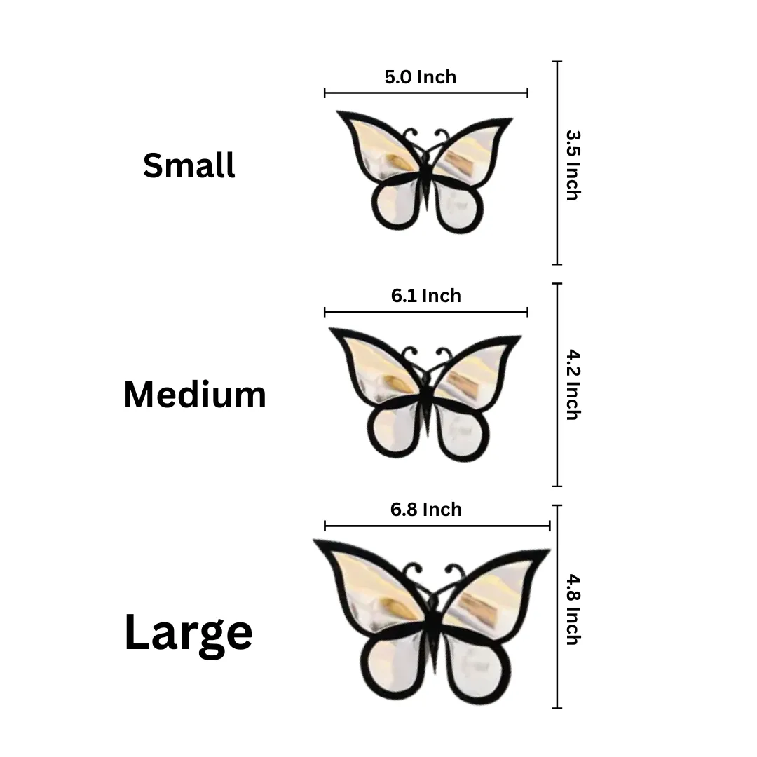 - Enhance your wall space with this butterfly-shaped wall art set. Combining MDF wood and acrylic, it adds a modern and stylish touch to any room. The black and silver finish provides a chic accent, and it comes ready to install with double tape. Perfect for bedrooms, living rooms, or kids’ rooms.